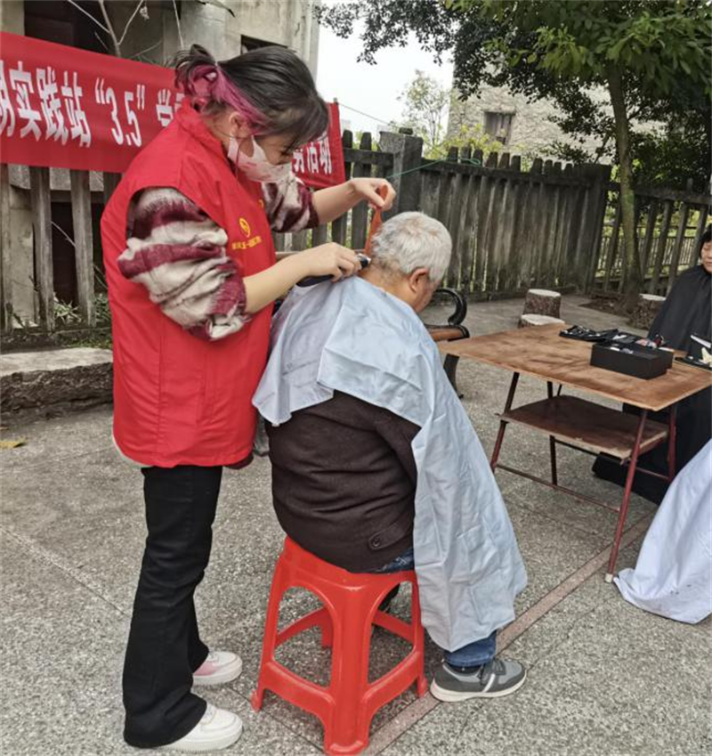 二是开展志愿服务进社区活动。我校美发与形象设计专业学生深入巴南区社区养老服务中心为老人们开展美发专项志愿服务,该活动不仅使老年人们的精神面貌焕然一新,还充分展现了我校学生爱老、敬老精神。