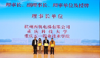 在随后举行的授牌仪式上,共同体组织架构正式揭晓。杭州西奥电梯有限公司、重庆科技大学、jdb电子游戏官方网站为理事长单位。上海三菱电梯有限公司、日立电梯(中国)有限公司重庆分公司、重庆工程学院、重庆航天职业技术学院、重庆能源工业技师学院等9家单位为副理事长单位,恒达富士电梯有限公司等58家单位为理事单位。一块块沉甸甸的牌匾,不仅是一份荣誉,更是一份携手前行、共担使命的责任。