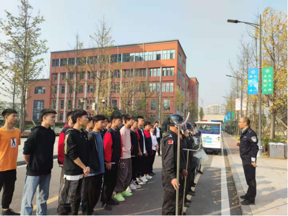 讲座中,黄中跃警官从法律的角度,围绕校园欺凌、财物盗窃、校园网贷、网络兼职、殴打他人等典型案例,深入浅出地向师生阐述了学法、懂法、用法的重要性,以及法律思维在日常学习生活中的运用。讲座结束后,黄中跃警官还指导我校校园保安人员和学生代表进行防暴处突演练。