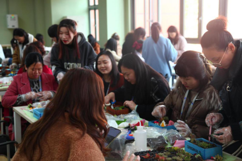 亲动手·享生活开展“我爱我家·多肉”绿色盆栽DIY活动。在老师的讲解和指导下,女同胞们手持小工具饶有兴趣地制作起来。剖土、栽种、铺石、装饰……大家变身巧手花匠,尽情释放自己的想象力,打造各具特色的“纯手工盆景”,亲身享受动手创作艺术的乐趣。