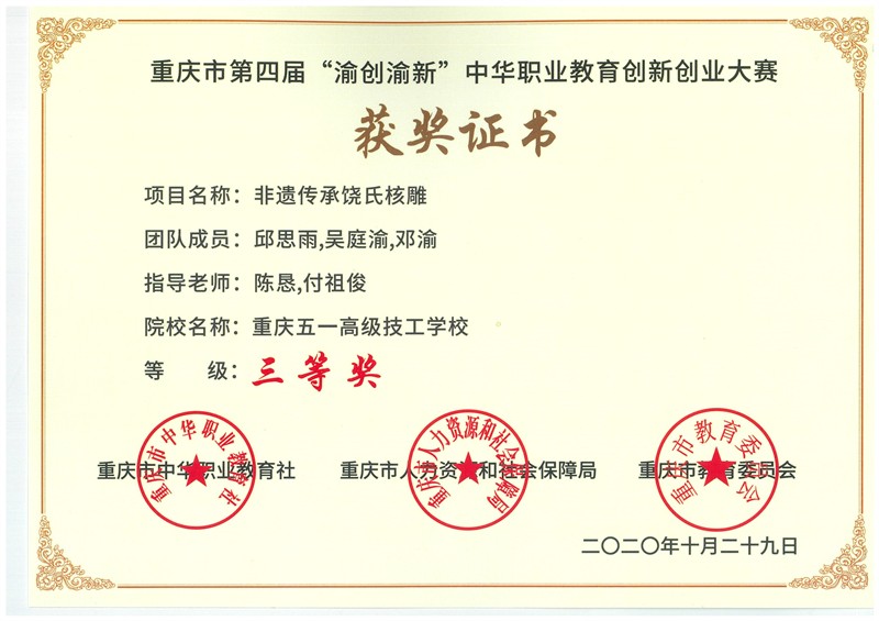重庆市第四届“渝创渝新”中华职业教育创新创业大赛中职组