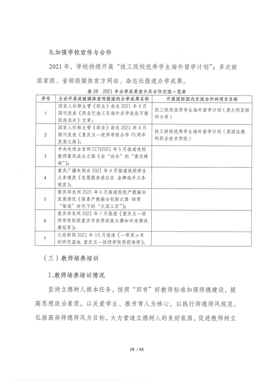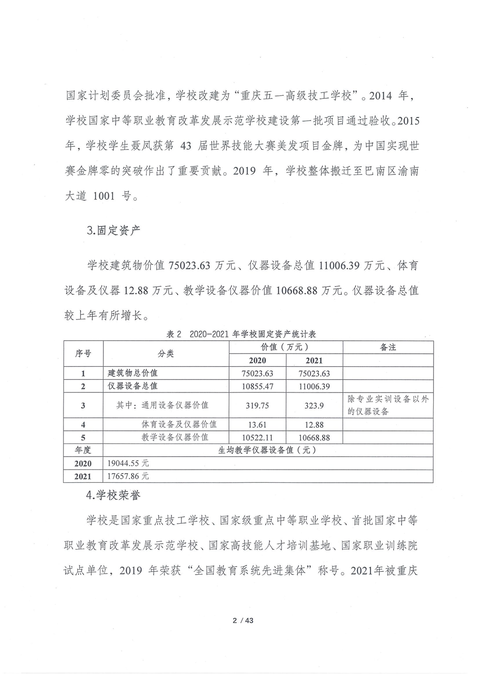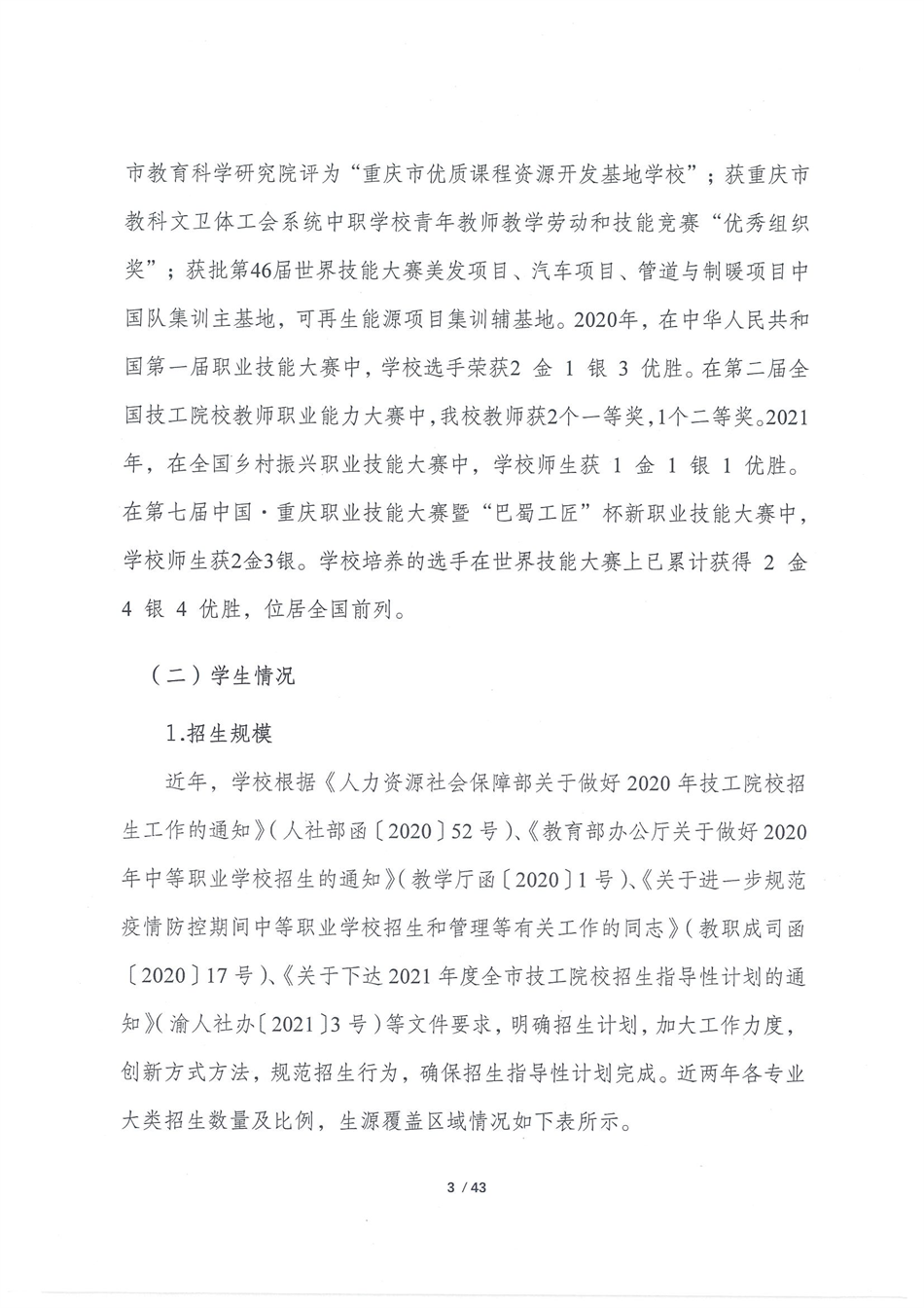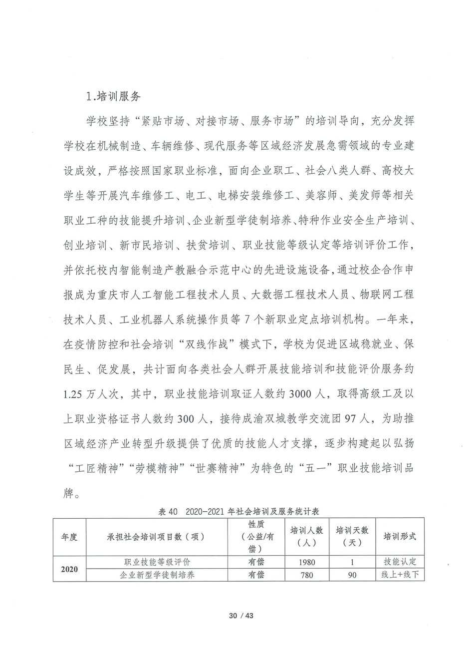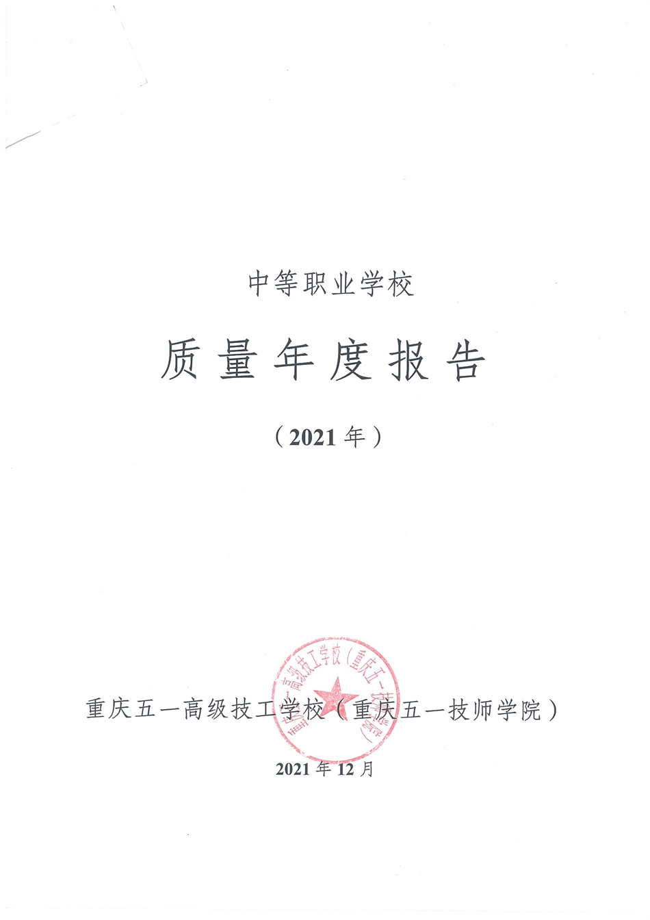重庆五一高级技工学校2021质量年报
